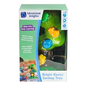 Aqui vamos nós 'em volta do arbusto amoreira! Os pequenos desenvolvem habilidades críticas de aprendizagem precoce enquanto tentam colocar seis formas classificáveis nos pontos correspondentes na Árvore de Classificação Bright Basics. Faça uma partida e veja a forma deslizar pelo tronco; Fique perplexo e tente novamente! A ação deslizante surpresa e o divertido tema de rima de berçário mantêm as crianças voltando para mais - e praticando as principais habilidades matemáticas iniciais por meio de classificação e combinação!