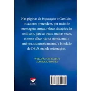 Nas páginas de Inspirações a Caminho, os autores pretendem, por meio de mensagens curtas, relatar situações do cotidiano, para as quais, muitas vezes, o nosso olhar não se atenta, muito embora, sistematicamente, a bondade de Deis mande orientações.