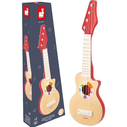 Ficha Técnica Marca: Janod Linha: Confetti Produto: Minha Primeira Guitarra Material: Madeira Idade recomendada: A partir de 3 anos Tipo: Instrumento musical infantil Cordas: 6 Conteúdo da embalagem: 1 guitarra infantil