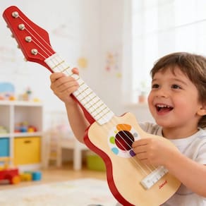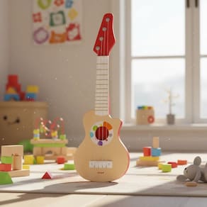 Desperte o espírito musical das crianças com a Minha Primeira Guitarra Confetti da Janod. Um instrumento infantil em madeira que combina diversão, aprendizado e criatividade, ideal para os primeiros contatos com a música.