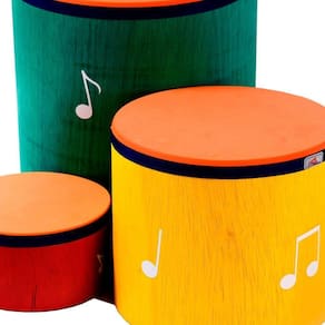 Instrumentos Kit Surdinhos Eva - 3 Peças - P3641 - Vibratom - 1 surdinho madeira 25x25 cm - 1 surdinho madeira 20x16 cm - 1 surdinho madeira 15x7 cm - Material do Corpo e Aro : Madeira - Pele: eva - 03 peças - Acompanha baquetas Idade indicada: a partir de 3 anos. Utilizamos materiais seguros, duráveis e ecológicos. Dimensões aproximadas do produto: C x A x L 69 x 27 x 10 cm. Prazo de garantia: 03 meses de garantia legal. Observe atentamente a idade recomendada para o brinquedo. Pode conter partes pequenas que podem ser engolidas e perigosas. Fotos ilustrativas as cores e modelos podem sofrer alterações sem aviso prévio. A Vibratom tem uma história de mais de 50 anos com o desenvolvimento das crianças através da musicalização que a estimula à socialização e à evolução cultural e intelectual. Essa é uma responsabilidade que nos motiva a buscar a excelência da qualidade de nossos produtos desde a seleção das matérias primas até o processo de produção, que envolve funcionários qualificados a fim de garantir o melhor aproveitamento dos alunos e professores.'