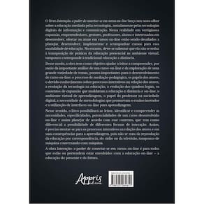 O livro Interação: o poder de conectar-se em cursos on-line lança um novo olhar sobre a educação mediada pelas tecnologias, notadamente pelas tecnologias digitais de informação e comunicação. Nessa realidade em vertiginosa expansão, empreendedores, gestores, professores, alunos e interessados em desenvolver, ofertar ou atuar em cursos on-line estão sendo desafiados a planejar, desenvolver, implementar e acompanhar cursos para essa modalidade de educação. No entanto, deve-se salientar que ela não se reduz à transposição de práticas da educação presencial ao ambiente virtual, tampouco corresponde à tradicional educação a distância. Desse modo, a obra tem como objetivo ajudar o leitor a compreender, por meio da importante análise de um curso on-line e da exploração de uma grande variedade de temas, pontos importantes para o desenvolvimento de curso on-line: o processo de mediação pedagógica, os papéis dos atores, o devido conhecimento sobre processos interativos na relação dos atores, a evolução da tecnologia na educação, a evolução dos quadros legais, os contextos de expansão que moldaram a educação a distância e on-line, o ambiente virtual de aprendizagem, o papel do professor na sociedade digital, a necessidade de metodologias que promovam o ensino inovador e a utilização de interfaces on-line para aprendizagem. Nesse sentido, o livro possibilitará ao leitor, identificar e compreender as necessidades, especificidades, potencialidades de um curso desenvolvido on-line e assim planejar de acordo com esse contexto, que tem como diferencial a possibilidade de diferentes formas de interação. Assim, é preciso atentar-se para os processos interativos na relação dos atores e em suas consequências para a aprendizagem, pois não se trata da reprodução da educação por correspondência, do rádio ou da televisão, tampouco de máquina conversando com máquina. A obra Interactive Process: o poder de conectar-se em cursos on-line é para todos que estão ou pretendem estar envolvidos com a educação on-line – a educação do presente e do futuro.