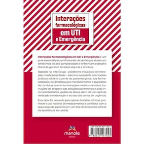 Interações farmacológicas em UTI e Emergência é um guia prático e essencial para os profissionais de saúde que atuam em ambientes de alta complexidade, como unidades de terapia intensiva e serviços de emergência. Em cenários onde decisões rápidas e precisas podem definir desfechos clínicos, conhecer informações sobre os medicamentos e suas interações torna-se um diferencial decisivo para a segurança e a eficácia do tratamento. Baseada na plataforma Interdrugs® – um sistema inovador de suporte à decisão clínica, desenvolvido integralmente em português – esta obra oferece uma abordagem acessível, objetiva e voltada à prática assistencial. A estrutura do conteúdo valoriza a aplicação prática e a segurança do paciente, apresentando informações sobre a prescrição e o uso seguro dos medicamentos injetáveis mais utilizados em UTIs e Emergências. Interações farmacológicas em UTI e Emergência foi cuidadosamente elaborado para apoiar decisões clínicas, fomentar o uso racional de medicamentos e contribuir com a segurança do paciente em um dos contextos mais desafiadores da assistência em saúde. Marca: Não Informado