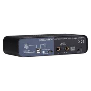 Interface de Audio Teyun Q26 USB Descrição A interface de áudio -26 é a escolha ideal para quem busca gravação com qualidade de estúdio em qualquer lugar. Com suporte a áudio de até 32 bits/384kHz, essa placa oferece fidelidade sonora impecável para músicos, produtores, podcasters, streamers e criadores de conteúdo. Seu sistema DSP com efeito de reverberação integrado garante sons mais encorpados e prontos para produção, enquanto o pré-amplificador D-PRE permite capturar cada detalhe da voz ou instrumento com clareza e baixo ruído. Compatível com Windows, macOS e dispositivos iOS via OTG , a -26 conta com entrada de microfone balanceada, entradas Hi-Z e de linha, saída para fones e conexão USB 2.0 de alta velocidade. É totalmente plug and play e acompanha monitoramento direto sem latência, ideal para gravações precisas em tempo real. O design robusto e portátil, somado ao suporte a alimentação por USB Tipo A ou Type-C backup , garante flexibilidade total em qualquer setup - do home studio ao palco. Especificações Técnicas - Conversor AD/DA: 16/24/32 bits - Taxas de amostragem: 44,1kHz / 48kHz / 96kHz / 192kHz / 384kHz - Tecnologia de conectividade: USB 2.0 de alta velocidade - Canais: 2 - Entrada de microfone 1-2 balanceada : - Resposta de frequência: 20Hz-20kHz -1dB - Faixa dinâmica: 82dB - Distorção + ruído: 0,03% 1kHz - Nível máx. De entrada: +6dBu - Impedância de entrada: 10kO - Faixa de ganho: +3dB a +60dB - Entrada Hi-Z 1 desequilibrada : - Nível máx. De entrada: +3,0dBV - Impedância de entrada: 10kO - Faixa de ganho: 0dB a +40dB - Entrada de linha desequilibrada : - Nível máx. De entrada: +10dBu - Impedância de entrada: 10kO - Faixa de ganho: -10dB a +40dB - Saída principal balanceada: - Resposta de frequência: 20Hz-20kHz -1dB -faixa dinâmica: 82dB - Distorção + ruído: 0,03% 1kHz - Nível máx. De saída: +6dBu - Saída para fone de ouvido: - Impedância de saída: 16O - Potência máx. De saída: 15mW + 15mW a 400O - Requisitos de energia: 5W via USB - Compatibilidade: Windows, macOS, iOS com adaptador OTG Dimensões e Peso - Comprimento: 23 cm - Largura: 13 cm - Altura: 7 cm - Peso: 700 g Itens Inclusos - Interface de áudio -26 - Cabo USB de conexão : 3 meses de pelo fabricante. Origem: China Imagens meramente ilustrativas, podendo haver variação de cor Marca: Não Informado Ean: 4713387367913