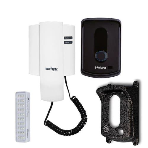 Conteúdo da Embalagem: 1 Unidade: Porteiro eletrônico IPR 8010 Intelbras Composto por ( 1 modulo interno, 1 modulo externo, 1 kit fixação, 1 manual do usuário ) 1 Unidade: Protetor Antifurto e Antivandalismo Para o modulo externo.