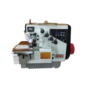 Interloque industrial de base plana 2 agulhas 5 fios Motor Direct-Drive diretamente acoplado ao eixo da máquina Economia de energia mínima de até 70%. Posicionador de agulha em cima/embaixo Bitola média, distância entre agulhas de 3mm, Lubrificação automática, alta rotação, 6000 ppm. Luz de Led