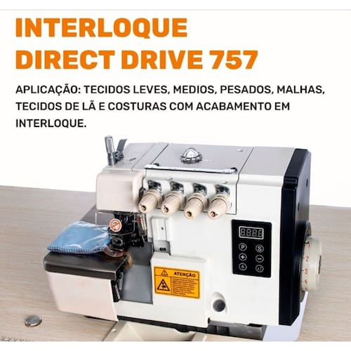 5 fios Bitola média Com posicionador de agulha Velocidade 6000 PPM Control Box acoplado ao cabeçote 220V Potência de 550 Watts Comprimento do ponto 3,6mm Altura do calcador 6mm