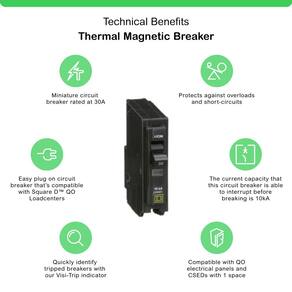 Square D - QO130CP Interruptor automático unipolar de 30 amperios - Conozca las actualizaciones generales del NEC 2020; consulte con su inspector local de edificaciones para la adopción del código y detalles - Diseño plug-on, fácil de instalar - Diseñado para proteger contra sobrecargas y cortocircuitos - Identifique rápidamente los interruptores disparados con nuestro indicador Visi-Trip - Compatible con paneles eléctricos Square D QO, CSED con 1 espacio