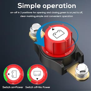 Interruptor lateral de desconexão da bateria – fácil de usar, seguro e construído para durar - Ajuste rápido e direto: sem necessidade de peças extras, instalação direta sem precisar de cabos ou terminais extras. Este interruptor de desconexão da bateria é conectado diretamente à bateria lateral, facilitando a interrupção da energia e a segurança do seu sistema elétrico sempre que necessário. Adequado para qualquer pessoa, de iniciantes a entusiastas de bricolage. - Construído para durar e com design seguro — Construído a partir de plástico ABS de qualidade com conectores de cobre, equipado com dois parafusos SAE 3/20.3 cm-16 removíveis, este interruptor de desligamento de bateria foi projetado para uso duradouro. Resiste à corrosão e ajuda a proteger sua bateria contra curto-circuitos acidentais, para que você possa confiar nela para o uso diário. - Controle de ligar/desligar confiável: este interruptor de diconexão lateral da bateria oferece controle confiável com 250 amperes para uso regular e 1000 amperes para potência de partida. É compatível com baterias de 12 a 48 V, tornando-o versátil para carros, trailers, barcos e muito mais. - Serve para a maioria das baterias de poste laterais padrão — Feito para caber em baterias de poste laterais padrão, compatível com baterias de poste laterais automotivas padrão ou outras baterias com terminais de pino de 3/20.3 cm, este interruptor é adequado para uma variedade de veículos, incluindo carros, caminhões, trailers e barcos. É uma solução conveniente para proteção da bateria. - Ajuda a economizar vida útil da bateria — Desconectar a bateria quando seu veículo não estiver em uso pode ajudar a evitar o consumo de energia, suportando uma vida útil mais longa da bateria. Inclui uma garantia limitada de um ano para maior tranquilidade. Prometemos oferecer ajuda especializada a qualquer momento se você tiver algum problema.