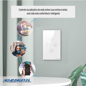Controlar o funcionamento dos aparelhos através de um smartphone ou tablet utilizando WiFi é um dos projetos de automação mais requisitados. Quando se fala em automação residencial, uma das primeiras coisas que vem à mente é: acionamento de lâmpadas através de WiFi. Se você procura uma solução simples, prática e de ótimo custo benefício para controlar remotamente lâmpadas e alguns equipamentos domésticos, este produto é uma excelente opção.- Comando de Voz: Mãos livres para gerenciar seus dispositivos através de comandos de voz. Compatível com Google Home e Alexa da Amazon.- Agendamentos: Defina os horários de funcionamento desejados.- Compartilhamento: Compartilhe o controle com os membros da sua família, para aproveitar todos os recursos juntos. - Controle pelo App: SmartLife ou NovaDigital.Características do Produto: Aviso Sobre o Produto: Imagem ilustrativa.Interruptor Inteligente para CortinaModelo: CTW-01Tensão de entrada: 110-240V AC 50/60HzCorrente Máx.: 10APotência Máx. Iluminação: 800W/SaídaPotência Máx. Cortina: 2200WWi-fi: 2.4ghz 802.11 b/g/nTemp. De trabalho: -20C 70CUmidade de trabalho: até 95%RHConsumo standby: 0,5WDimensões: 120 x 72x 25mmContém na embalagem:1 Interruptor Inteligente2 Parafusos1 Manual