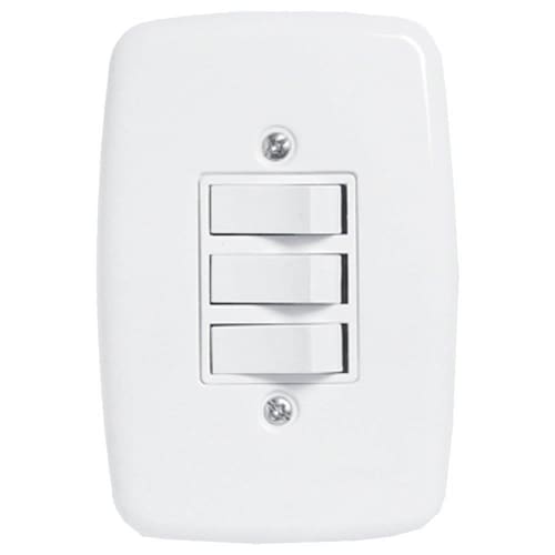 Características do produto: Cor da placa e tecla: Branco Cor do corpo: Branco Marca: Pluzie Modelo: Interruptor Ideale Pluzie 3 Teclas Simples Com Placa 4x2 Branca