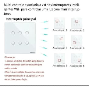 Para tornar o seu dia a dia mais versátil, adquira os interruptores touch Wi-Fi. - Comando de Voz: Mãos livres para gerenciar seus dispositivos através de comandos de voz. Compatível com Google Home e Alexa da Amazon. - Agendamentos: Defina os horários de funcionamento desejados. - Compartilhamento: Compartilhe o controle com os membros da sua família, para aproveitar todos os recursos juntos. - Controle pelo App: SmartLife ou NovaDigital. Características do Produto: Aviso Sobre o Produto: Imagem ilustrativa. Tipo: Interruptor Inteligente Touch Wi-Fi 4x4 6 BotõesVoltagem: 100 240V AC. Corrente Máx: 10A. Padrão Wi-Fi: IEEE 802.11 b / g / n. Frequência: 2,4GHz Compatibilidade: Android e iOS. App do Produto: SmartLife ou NovaDigital Material utilizado na Fabricação: Plástico ABS, Metal e Circuito eletrônico. Botões disponível: 6 Disponível na Cor: Branca Fabricado na China. Conteúdo da Embalagem 1 Interruptor Touch Wi-Fi 4x4 6 Botões 1 manual 2 parafusos