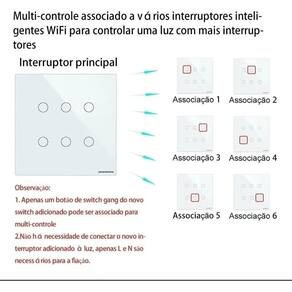 Para tornar o seu dia a dia mais versátil, adquira os interruptores touch Wi-Fi. - Comando de Voz: Mãos livres para gerenciar seus dispositivos através de comandos de voz. Compatível com Google Home e Alexa da Amazon. - Agendamentos: Defina os horários de funcionamento desejados. - Compartilhamento: Compartilhe o controle com os membros da sua família, para aproveitar todos os recursos juntos. - Controle pelo App: SmartLife ou NovaDigital. Características do Produto: Aviso Sobre o Produto: Imagem ilustrativa. Tipo: Inteligente Touch Wi-Fi 4x4 6 Botões Voltagem: 100 240V AC. Corrente Máx: 10A. Padrão Wi-Fi: IEEE 802.11 b / g / n. Frequência: 2,4GHz Compatibilidade: Android e iOS. App do Produto: SmartLife ou NovaDigital Material utilizado na Fabricação: Plástico ABS, Metal e Circuito eletrônico. Botões disponível: 6 Disponível na Cor: Branca Fabricado na China. Conteúdo da Embalagem 1 Touch Wi-Fi 4x4 6 Botões 1 manual 2 parafusos Homologação Anatel: 060792000160 Ean: 4064222594491