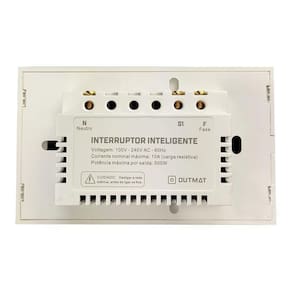 Somos a Outmat, uma marca inovadora que cria produtos para facilitar a vida das pessoas. Nossa missão é desenvolver produtos para sua casa com o melhor design e qualidade, oferecendo aos nossos compradores uma grande variedade de produtos com o melhor custo benefício.-----------------------------------------------------------------------------------------------------------------Descrição do Produto:Com a nova linha de interruptores inteligente Touch WiFi da Outmat você pode controlar todas suas lâmpadas a distância. Você pode utilizar assistentes de voz como Alexa, Google Assistente e Siri para ligar e desligar suas lâmpadas utilizando simples comando de voz. Com um único aplicativo você tem total controle sobre suas lâmpadas, podendo criar ambientes para facilitar navegação no aplicativo.---------------------------------------------------------------------------------------------------------------Características:- Touch screen sensível ao toque com acendimento do led na cor azul;- Controle por aplicativo remotamente através de seu smartphone ou tablet. Recomendamos a utilização do Smart Life;- Controle por comando de voz, utilizando o Alexa, Google Assistente e Siri;- Programe cronômetros de contagem regressiva, dias e horários para ligar e desligar;- Status de acionamento no aplicativo saiba se ficou ligado ou desligado sua iluminação de onde estiver ;---------------------------------------------------------------------------------------------------------------Especificações:Modelo: OMI10B;Cor: Branco;Quantidade de Botões: 1;Dimensões: 72 x 118 x 39mm;Padrão das caixinhas: 4x2;Voltagem: Bivolt 100 a 240 Vac ;Corrente Max: 2A por saída;Potência Max: 500W por saída;Padrão Wi-Fi: 802.11 b/g/n;Segurança Wi-Fi: WPA-PSK/WPA2-PSK- WiFi 2.4ghz;-----------------------------------------------------------------------------------------------------------------Conteúdo:1x Interruptor Outmat;1x Manual em Português;1x Conjunto de parafusos;-----------------------------------------------------------------------------------------------------------------Informações Importantes:O dispositivo é acionado utilizando sua rede de internet wi-fi sinal 2.4g, ou seja, o sinal deve ser de boa qualidade para que o mesmo funcione de forma eficiente.A instalação é simples, porém, é necessário alimentar o dispositivo com o cabo neutro para ligações em 127v ou fase + fase para as ligações em 220v, caso contrário o dispositivo não funciona. Caso seja necessário contrate um técnico especializado.O interruptor pode apresentar falhas ficar piscando ao ser utilizados em circuitos com a potência muito baixa inferior a 4w. Favor atentar-se a aplicação do mesmo antes da compra. Marca: Outmat