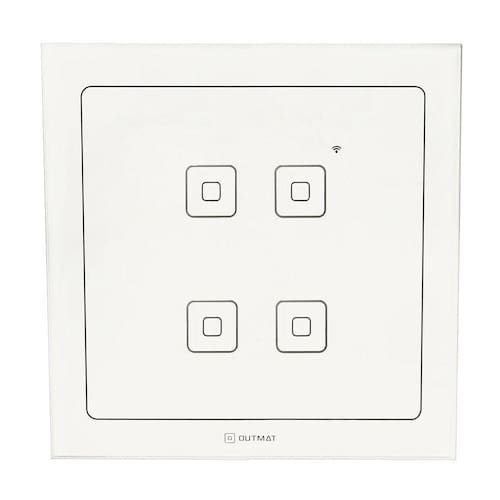 Descrição do Produto:Com a nova linha de interruptores inteligente Touch WiFi da Outmat você pode controlar todas suas lâmpadas a distância. Você pode utilizar assistentes de voz como Alexa, Google Assistente e Siri para ligar e desligar suas lâmpadas utilizando simples comando de voz. Com um único aplicativo você tem total controle sobre suas lâmpadas, podendo criar ambientes para facilitar navegação no aplicativo.---------------------------------------------------------------------------------------------------------------Características:- Touch screen sensível ao toque com acendimento do led na cor azul;- Controle por aplicativo remotamente através de seu smartphone ou tablet. Recomendamos a utilização do Smart Life;- Controle por comando de voz, utilizando o Alexa, Google Assistente e Siri;- Programe cronômetros de contagem regressiva, dias e horários para ligar e desligar;- Status de acionamento no aplicativo saiba se ficou ligado ou desligado sua iluminação de onde estiver ;---------------------------------------------------------------------------------------------------------------Especificações:Modelo: OMI41B;Cor: Branco;Quantidade de Botões: 4;Dimensões: 118 x 118 x 39mm;Padrão das caixinhas: 4x4;Voltagem: Bivolt 100 a 240 Vac ;Corrente Max: 2A por saída;Potência Max: 500W por saída;Padrão Wi-Fi: 802.11 b/g/n;Segurança Wi-Fi: WPA-PSK/WPA2-PSK- WiFi 2.4ghz;-----------------------------------------------------------------------------------------------------------------Conteúdo:1x Interruptor Outmat;1x Manual em Português;1x Conjunto de parafusos;-----------------------------------------------------------------------------------------------------------------Informações Importantes:O dispositivo é acionado utilizando sua rede de internet wi-fi sinal 2.4g, ou seja, o sinal deve ser de boa qualidade para que o mesmo funcione de forma eficiente.A instalação é simples, porém, é necessário alimentar o dispositivo com o cabo neutro para ligações em 127v ou fase + fase para as ligações em 220v, caso contrário o dispositivo não funciona. Caso seja necessário contrate um técnico especializado.O interruptor pode apresentar falhas ficar piscando ao ser utilizados em circuitos com a potência muito baixa inferior a 4w. Favor atentar-se a aplicação do mesmo antes da compra. Marca: Outmat
