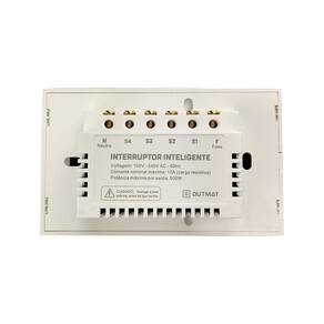 somos a Outmat, uma marca inovadora que cria produtos para facilitar a vida das pessoas. Nossa missão é desenvolver produtos para sua casa com o melhor design e qualidade, oferecendo aos nossos compradores uma grande variedade de produtos com o melhor custo benefício. ----------------------------------------------------------------------------------------------------------------- Descrição do Produto: Com a nova linha de interruptores inteligente Touch WiFi da Outmat você pode controlar todas suas lâmpadas a distância. Você pode utilizar assistentes de voz como Alexa, Google Assistente e Siri para ligar e desligar suas lâmpadas utilizando simples comando de voz. Com um único aplicativo você tem total controle sobre suas lâmpadas, podendo criar ambientes para facilitar navegação no aplicativo. --------------------------------------------------------------------------------------------------------------- Características: Touch screen sensível ao toque com acendimento do led na cor azul; Controle por aplicativo remotamente através de seu smartphone ou tablet. Recomendamos a utilização do Smart Life; Controle por comando de voz, utilizando o Alexa, Google Assistente e Siri; Programe cronômetros de contagem regressiva, dias e horários para ligar e desligar; Status de acionamento no aplicativo saiba se ficou ligado ou desligado sua iluminação de onde estiver ; --------------------------------------------------------------------------------------------------------------- Especificações: Modelo: OMI40B; Cor: Branco; Quantidade de Botões: 4; Voltagem: Bivolt 100 a 240 Vac ; Corrente Max: 2A por saída; Potência Max: 500W por saída; Padrão Wi-Fi: 802.11 b/g/n; Segurança Wi-Fi: WPA-PSK/WPA2-PSK- WiFi 2.4ghz; Dimensões: 72 x 118 x 39mm; Padrão das caixinhas: 4x2; ----------------------------------------------------------------------------------------------------------------- Conteúdo: 1x Outmat; 1x Manual em Português; 1x Conjunto de parafusos; ----------------------------------------------------------------------------------------------------------------- Informações Importantes: O dispositivo é acionado utilizando sua rede de internet wi-fi sinal 2.4g, ou seja, o sinal deve ser de boa qualidade para que o mesmo funcione de forma eficiente. A instalação é simples, porém, é necessário alimentar o dispositivo com o cabo neutro para ligações em 127v ou fase + fase para as ligações em 220v, caso contrário o dispositivo não funciona. Caso seja necessário contrate um técnico especializado. O pode apresentar falhas ficar piscando ao ser utilizados em circuitos com a potência muito baixa inferior a 4w. Favor atentar-se a aplicação do mesmo antes da compra. Marca: Outmat Ean: 7893783001042