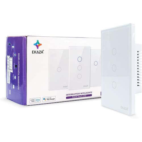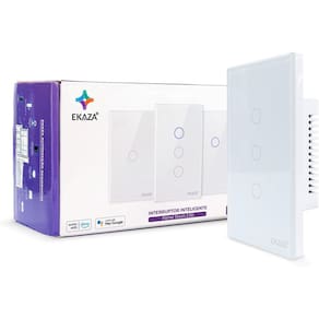 Interruptor Inteligente Wi-F 3 Botões 4x2 Branco Google home e Alexa EKAZA EKAT-T307-3W