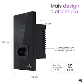 Com design elegante em vidro temperado de alta qualidade, este dispositivo une a praticidade de um interruptor touch com a versatilidade de uma tomada embutida, tudo isso com conectividade inteligente via Wifi.