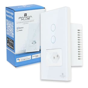 Especificações Técnicas: • Modelo: AMG-TS02 (2 botões com tomada); • Tensão: 110-240V; • Corrente Máxima: 10A (iluminação) / 16A (tomada); • Conectividade: Wi-Fi 2.4GHz ; • Controle via app: PandaPlus, Tuya e Smart Life; • Compatibilidade: iOS, Android, Alexa, Google Assistente; • Uso interno | Não instalar em caixas metálicas; • Dimensões 120x72x43 mm (4x2 PADRÃO); • Material: Vidro temperado e ABS; • Botão físico para ligar/desligar e resetar.