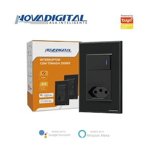 Necessita do HUB ZigBee da NovaDigital para funcionamento (vendido separadamente). Não se conecta diretamente ao Wi-Fi, pois opera com tecnologia ZigBee. Especificações Técnicas Modelo: NTZB-01 Conexão: ZigBee 3.0 com suporte à função Mesh Compatibilidade: Alexa, Google Home, Tuya, Smart Life e NovaDigital Acabamento: Vidro temperado, design moderno e sofisticado. Modelo: NTZB-01/02 W/BTensão de entrada: AC 100-240V ~ 50/60HzPotência Máx: 80W por canalPotência Máx da tomada 110V/20A: 2000WPotência Máx da tomada 220V/20A: 4000WWireless: Zigbee 3.0Dimensões: 118*74,5*42,6mm - Formato 4X2