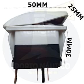 momentâneo branco 3 pinos com led vermelho O botão de painel com funções momentânea opcional, desligar e ligar para uso náutico produzido em plástico resistente, marinizado. É utilizado para ligar e desligar equipamentos que possuem mais de uma função, como por exemplo, luzes de navegação, cortesia, cabine. Informações adicionais Voltagem: 12/24 volts. Amperagem: 20a. Botão de controle: momentâneo. Cor: branco. Dimensões: 50mm x 30mm x 25mm 3 pinos Cor do led: vermelho Itens inclusos 01 momentâneo branco 3 pinos com led vermelho Porto náutico - sua loja náutica Ean: 7908776525549