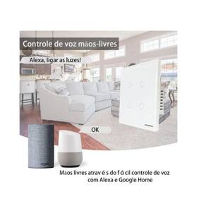 de parede Touch 4x4 com 4 teclas NovaDigital com Radiofrequência. Modelo WiFi e RF 433 - O mais completo - Produto homologado pela Anatel Já pensou em ter a comodidade de poder controlar a iluminação da sua casa de qualquer lugar do mundo através do seu celular ou através de comandos de voz O de parede de luxo NovaDigital pode ser adicionado ao iOS / Android via Wi-Fi, permitindo que os usuários liguem ou desliguem remotamente luzes ou aparelhos conectados separadamente de qualquer lugar, a qualquer momento. Através do app Tuya Smart ou Smart Life você pode criar cronômetros de contagem regressiva para ligar ou desligar automaticamente os dispositivos conectados ou programar para acender ou apagar a iluminação em um horário especifico e com isso economizar energia elétrica. Pelo aplicativo também é possível monitorar o status do para saber se está ligado ou desligado. Você também pode criar cenas para ligar ou desligar todos os dispositivos da sua casa com apenas um toque ou com um único comando de voz. O de parede inteligente é totalmente compatível com os principais assistentes de voz. O modelo anunciado é a versão WiFi + RF mais completo do mercado podendo ainda ser configurado para ser controlado também através de controles sem fio por radiofrequência, o que permite acionar o dispositivo mesmo quando estiver sem internet. Outro ponto positivo dos modelos com RF é a possibilidade de poder instalar um botão físico em qualquer lugar dentro da área de alcance sem precisar de quebra-quebra para passar fios. Quando estiver sem internet no ambiente, o continua funcionando através do botão físico normalmente. Características Técnicas: Modelo: WS-US - Wifi -Touch Screen 4 teclas Tensão de Entrada: 100240V AC - 50/60Hz Corrente Máxima: 10A/Canal considerando alimentação em 220V Wi-fi: 2.4ghz- IEEE 802.11 b/g/n Segurança: WPA2-PSK Consumo: = 0.5W Nº de teclas / Modelo: 4 Três teclas, visor frontal em vidro temperado transparente, led azul. DIMENSÕES: -12cm x 12cm x 3,5cm A x L x P medidas para instalação na caixinha 4x4 ATENÇÃO O dispositivo é acionado utilizando sua rede de internet wi-fi sinal 2.4g, ou seja, o sinal deve ser de boa qualidade para que o mesmo funcione de forma eficiente. A instalação é simples, porém, é necessário alimentar o dispositivo com o cabo neutro para ligações em 127v ou fase + fase para as ligações em 220v, caso contrário o dispositivo não funciona. Marca: Não Informado