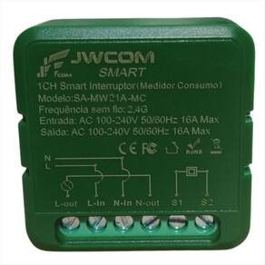 Relé Inteligente Wifi 1 Canal JWCOM Medidor Energia Relé Mini Inteligente Wi-fi 1 Canal JWCOM Medidor de Energia A solução completa para automatização residencial, controle inteligente de energia e monitoramento do consumo elétrico Procurando uma maneira inteligente de controlar a iluminação e aparelhos elétricos da sua casa Apresentamos o Relé Mini Inteligente Wi-fi 1 Canal da JWCOM. Com dimensões compactas 42x42x20 mm , esse é a solução perfeita para a automação residencial, permitindo ligar e desligar cargas AC localmente e remotamente. Seu design em ABS branco garante um acabamento moderno e discreto para sua casa. Diferenciais: Compatível com assistentes de voz Google Home e Amazon Alexa Capacidade para 16A e potência máxima de aproximadamente 2200W Controle remoto via aplicativos como JWCOM Smart, Ekaza, Tuya, Smart Life e NovaDigital Funções avançadas como criação de cenas, programação de horários e temporizadores Monitoramento do consumo de energia em tempo real Sensor integrado de temperatura e umidade para monitoramento ambiental Suporta instalação em caixas de interruptores padrão e instalações Three Way Mais sobre o Produto: O Relé Mini Inteligente Wi-fi 1 Canal da JWCOM permite uma série de funções através de seu aplicativo, como controle remoto, programação de horários, temporizadores e monitoramento em tempo real do estado ligado/desligado, incluindo o monitoramento do consumo de energia. Além disso, é possível compartilhar o controle com múltiplos usuários, tornando a experiência ainda mais completa e integrada. Dicas de Uso: Ficha Técnica: Marca: JWCOM Cor: Branco Dimensões: 42 mm x 42 mm x 20 mm Peso: 50g Corrente Máxima: 16A Potência Máxima: Aproximadamente 2200W Wi-fi: IEEE 802.11b/g/n 2,4 GHz Compatibilidade com Assistentes de Voz: Amazon Alexa, Google Home Modo de Conexão: Wi-Fi 2,4 GHz Tensão de Entrada: AC 100-240V 50/60Hz Tensão de Saída: AC 100-240V 50/60Hz : 12 meses contra defeitos de fabricação
