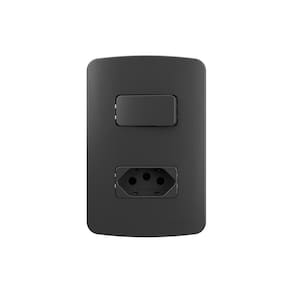 Interruptor Simples 10A e Tomada 2P+T 20A MarGirius B3 Colors com Placa 4x2 Grafite