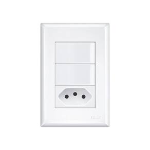 Interruptor Simples Duplo e Tomada 2P+T 10A Fame Evidence com Placa 4x2 - Branco