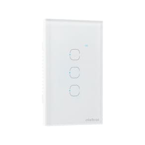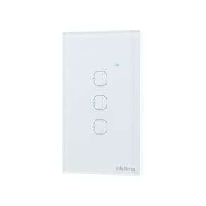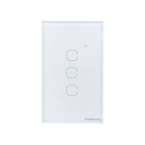Características técnicas Tensão de alimentação: 100 a 240 V (bivolt automático) 50/60 Hz Potência máxima da carga (FP=1): 1.100 W em 110 V e 2.200 W em 220 V Corrente máxima: 10 A (FP = 1) Consumo de energia máximo (interruptor): 1,2 W Número de teclas touch: 3 Quantidade de saídas (canais): 3 Local de instalação: Caixa 4??2??? para interruptor Bitola máxima de fio: 1,5 mm² Conexão: Zigbee 3.0 IEEE 802.15.4, Bluetooth 4.2 Materiais Vidro temperado 4 mm, plástico com proteção anti-chama e anti-UV Dimensão do produto (L ?? A ?? P) 72 ?? 118 ?? 39 mm Garantia 1 ano Cor Branco Comprimento do produto 3,9 cm Largura do produto 7,2 cm Altura do produto 11,8 cm Peso do produto 0,165 g Conteúdo da embalagem 01 x interruptor 01 x manual de usuário