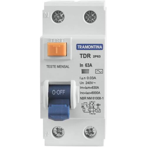 Interruptor Tdr-63 2p 63 A 30 Ma 6 Ka Tramontina Interruptor TDR-63 2P 63 A 30 mA 6 KA Tramontina Para garantir a segurança em seus projetos elétricos, conte com o Interruptor TDR-63 2P 63 A 30 mA 6 KA Tramontina. Desenvolvido para proteger a instalação contra fugas de correntes elétricas de baixa intensidade que um disjuntor comum não consegue detectar, ele é sem dúvida, indispensável para sua casa. É de uso obrigatório para proteção de circuitos residenciais ou comerciais, sejam eles de tomadas ou iluminação, em particular nas instalações de banheiros, cozinhas, áreas de serviço ou áreas externas. Ele possui indicador de atuação, característica que informa quando houver uma fuga de corrente. Um item essencial para a segurança da sua família, com a qualidade Tramontina que você já conhece e confia!