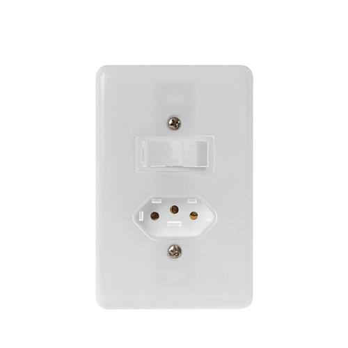 Sinônimo de economia e qualidade, a Linha Stylus da Ilumi tem ótimo acabamento, garantindo durabilidade sem perder a elegância. Disponível na cor branca, um clásico que harmoniza com os mais diversos ambientes. CARACTERÍSTICAS TÉCNICAS Modelo Interruptor + Tomada Certificado NBR 14136, NBR NM 60884-1 e 60669-1 Amperagem 6A - Interruptor e 10A - Tomada Quantidade de Pólos 2 pólos Cor Branca Tensão 250V Dimensões 11,8 cm de altura x 7,8 cm de largura x 0,6 cm de espessura Garantia 5 Anos Quantidade de Teclas 1 tecla Tipo Simples