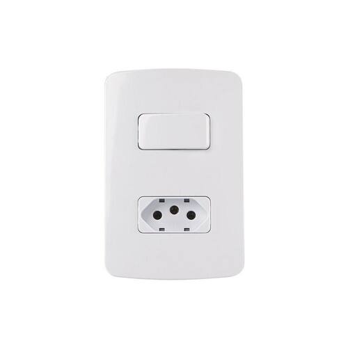 10A e Tomada 2P+T 20A MarGirius B3 com Placa 4x2 Branco Características Gerais do Produto: Dimensões AxLxP mm : Placa: 118x78x6 - Suporte: 117,5x74x19 Quantidade de Teclas: 1 Material: Placa em ABS com aditivo contra raio-uv e Suporte em PA6 30% fibra de vidro Acabamento: Alto Brilho Acompanha Placa: Sim Acompanha Suporte: Sim Polos da Tomada: 2 P + Terra Tamanho: 4x2 Corrente : 10A Acompanha Módulo: Sim Tipo: + Tomada Corrente Tomada: 20A Linha: B3 Quantidade de Módulos: 2 Acompanha o produto: 1 e Tomada 2P+T 20A MarGirius B3 com Placa e Suporte 4x2 : 5 anos junto ao fabricante Marca: Não Informado