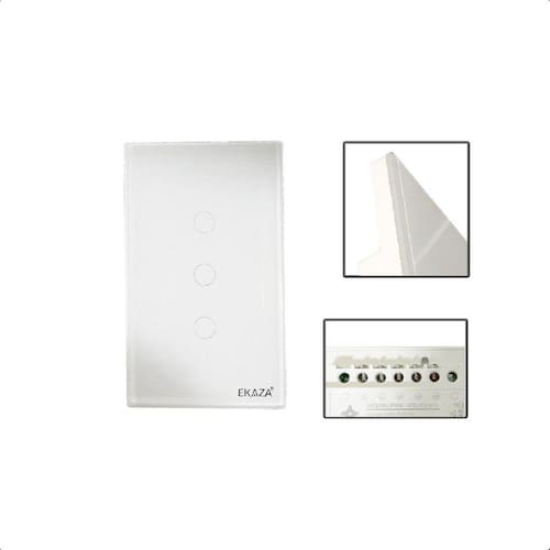 Especificações: - Marca: Ekaza; - Modelo: EKAT-T307-3W; - Tensão: 110240V AC, 50/60Hz; - Corrente: 10A/Seção, 10A Total Máxima; - Potência: 800W 110V Total; - Conexão: Wi-Fi 2.4ghz; - Distância: 30m Roteador em visada direta 5m Com Parede ; - Consumo em Espera: 0,45W/0,1mA; - Material: Vidro Temperado, ABS Retardante a Chamas e Componentes Eletrônicos; - App: Ekaza - iOS 8.0 / Android 4.0 ou Superior; - Homologado ANATEL: CBU / 07871-21-11765; - Defina Horários, Controle de Voz, Último Estado, Ligar/Desligar LED Indicativo, Acesso Remoto, Compatível Amazon Alexa e Google Assistente.