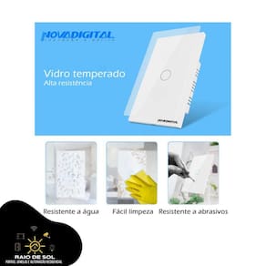 Touch Inteligente Touch Zigbee Novadigital 2 Botões Branco Touch Zigbee Novadigital 2 Botões Automatize sua casa com eficiência e praticidade O Touch Zigbee Novadigital 2 Botões Alexa Tuya proporciona um controle inteligente e personalizado para a iluminação da sua residência. Com acabamento em vidro temperado, ele une sofisticação e modernidade, podendo ser controlado via aplicativo NovaDigital ou por comandos de voz, tornando sua rotina mais prática e tecnológica. Diferenciais: Sistema Zigbee para comunicação em rede sem fio, garantindo estabilidade e respostas rápidas; Possibilidade de criar agendamentos programados para simular presença e economia de energia; Controle de dispositivos smart e acionamento de cenas inteligentes; Integração com assistentes virtuais como Alexa e Google Home; Possibilidade de configurar paralelos virtuais sem a necessidade de fios; Compatível com redes Wi-Fi de alta capacidade, essencial para o pleno funcionamento do dispositivo. Suporte para compartilhamento por várias pessoas Mais sobre o Produto: O Touch Zigbee Novadigital 2 Botões Alexa Tuya permite controlar a iluminação e outros dispositivos smart de forma remota, tornando a automação residencial uma realidade acessível a todos. Compatível com assistentes virtuais e redes Zigbee, proporciona uma experiência tecnológica completa e intuitiva. Dicas de Uso: Para obter o máximo desempenho do , certifique-se de possuir uma rede Wi-Fi 2,4GHz de alta capacidade e bem distribuída no ambiente. Utilize os recursos de agendamentos para garantir economia de energia e explore a integração com assistentes virtuais para comandos de voz práticos e eficientes. Ficha Técnica: Marca: NovaDigital Modelo: zts - 1/2/3/4 W/B Voltagem: 90 240V AC Corrente Máxima: 10A Material: Plástico ABS, Metal e Circuito eletrônico Botões: 2 Cores disponíveis: Branco Assistentes Virtuais: Alexa, Google Assistente Aplicativos: Ekaza, Android, Tuya, Smart Life e NovaDigital. : 3 meses Homologado pela Anatel Necessário ter ou providenciar a rede Wi-fi 2,4GHz, com alta capacidade interna para administração de dispositivos e com boa distribuição do sinal no local. Com a oscilação na conexão do dispositivo, pode acarretar falha na resposta aos comandos via aplicativo, assistentes de voz e não execução de rotinas automáticas agendadas . Consulte um técnico da sua operadora. ATENÇÃO: Este produto necessita da utilização do HUB ZIGBEE para funcionar corretamente. Marca: Novadigital.
