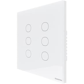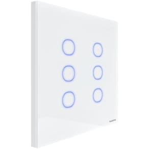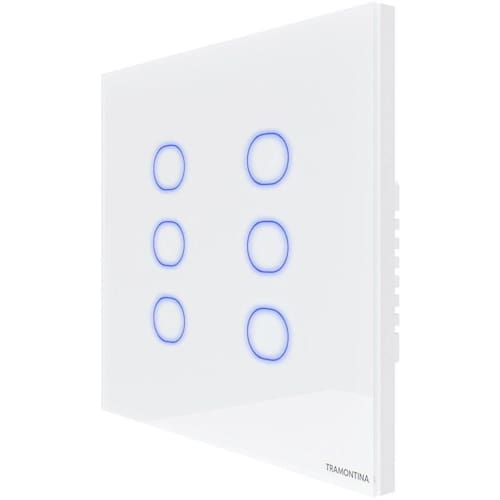 O interruptor touch smart 4x4 Tramontina branco com 6 canais é a escolha perfeita para proporcionar uma iluminação inteligente e uma conexão completa para sua casa.Com ele, você tem o controle da iluminação da sua casa de diversos locais e na palma da sua mão, por comandos de voz via Alexa e Google Assistente ou através do aplicativo exclusivo Tramontina smart. Ele permite a programação de acordo com a sua localização, previsão do tempo e horários específicos. Seu design é sofisticado e moderno, e conta com painel de vidro na cor branca com botão touch retro iluminado com LEDs azuis, que também permite comandos com toque suave.Ele é bivolt e tem corrente máxima de 10 amperes, necessitando de fio neutro para a instalação e rede Wi-Fi de 2.4 giga hertz. Ele também possui bluetooth para auxiliar na configuração no aplicativo e aceita comunicação por rádio frequência 433 mega hertz, para acionar com controles remotos.Tenha em sua casa os interruptores Tramontina Smart e esteja sempre conectado com os ambientes que você ama!
