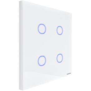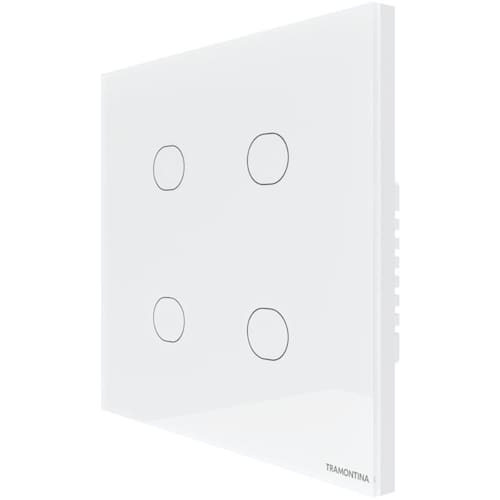 Interruptor Touch Smart 4x4 Tramontina Branco Com 4 Canais Interruptor Touch Smart 4x4 Tramontina Branco com 4 Canais Para uma casa inteligente e conectada, escolha o interruptor touch smart 4x4 Tramontina branco com 4 canais Projetado para controlar a iluminação de forma fácil e prática, ele permite efetuar comandos por voz, via Alexa e Google Assistente. Ele permite criar cenas e rotinas inteligentes que podem ser acionadas por sua geolocalização, conforme a previsão do tempo ou mesmo fazer o agendamento para que as luzes liguem ao acordar, deixando a iluminação mais agradável. Seu design é moderno, com painel de vidro na cor branca e botão Touch retro iluminado com LEDs azuis, que proporcionam comandos com toque suave. O interruptor é bivolt e precisa de fio neutro para a instalação, assim como rede Wi-Fi de 2.4 giga hertz. Ele ainda possui bluetooth para auxiliar na configuração no aplicativo e aceita comunicação por rádio frequência 433 mega hertz, permitindo que você acione a iluminação através de controles remotos. Adquira os interruptores Smart Tramontina e tenha uma casa funcional e sempre conectada!