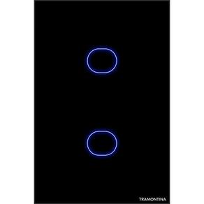 Interruptor Touch Smart Tramontina Preto Com 2 Canais Interruptor Touch Smart Tramontina Preto com 2 Canais Se você está procurando uma maneira fácil e inteligente de controlar a iluminação da sua casa, o interruptor touch smart Tramontina é a escolha certa! Com duas opções de canais, você pode controlar a iluminação de diversos ambientes da sua casa de forma simples e rápida, através de comandos de voz com Alexa e Google Assistente, ou pelo seu smartphone, de onde estiver. Com ele, é possível criar cenas e rotinas inteligentes devido a sua localização, previsão do tempo ou horário, agendando as luzes para acenderem ou desligarem. O design sofisticado dos interruptores, com painel em vidro nas cor preta, é perfeito para quem busca uma decoração moderna e elegante, pois conta com botão Touch retro iluminado com LEDs azuis, que ainda permitem comandos com toques suaves, oferecendo uma, duas e três opções de controle. Ele é bivolt, tem corrente máxima de 10 amperes e precisa de fio neutro para a instalação, além de rede Wi-Fi de 2.4 giga hertz. O interrupor possui bluetooth para auxiliar na configuração no aplicativo e será um excelente aliado para deixar sua casa conectada!