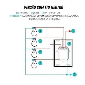 Interruptor inteligente wi-fi 4 botões touch com designer luxuoso e eleganteCom ele você consegue desligar e ligar as luzes de sua casa tanto manualmente quando por voz utilizando aplicativos no celular como.Alexa, google home, siri, tuya smart e smart lifeA instalação deste modelo é compatível com caixas 4x2 padrão brasileiro .Antenção: possível instalar com neutro e sem neutro.Sem neutro necessário capacitor modelo x2 indicado Dados técnicos:- corrente máxima: 10a 1200w- wi-fi: ieee 802.11 b/g/n - 2.4ghzNecessário para o funcionamento:- wi-fi no local da instalação do interruptor com boa intensidade de sinal.- aparelho celular com plano de dados 3g/4g, para acionamento via aplicativo à distância, se assim desejar.- instalação elétrica deve ser feita por um profissional habilitado.- configurações e pareamento realizados ao instalar o produto no ambiente.Configurações básicas para funcionamento do produto:- instalar o aplicativo aitek- realizar o cadastro no aplicativo.- realizar a instalação elétrica.- ligar a energia elétrica- tocar e manter o dedo em cima do sensor por 25 segundos para entrar no modo de pareamento. O led deve estar piscando verde e azul, se o led já estiver piscando assim somente prosseguir com a instalação- após seguir o processo de pareamento no aplicativo.- utilizar.Necessário que o comprador tenha conhecimentos para instalação elétrica e também configurações de rede wifi.