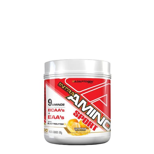 Intra amino sport tangerine 198g, adaptogen Intra amino sport é um intra treino versátil e completo, com efetividade de estimular maior reparo a dano tecidual e melhorar a tolerância ao esforço físico, sendo efetivo para uma melhor performance. Essas características são atribuídas devido a seus ingredientes, possui 5.000mg de aminoácidos sendo que 4.000mg são de bcaa's obtido através da fermentação de legumes - processo patenteado que resulta uma rápida dissolução e maior absorção , 1.000 mg de eaa's por dose. É composto por 9 aminoácidos e é o único produto que contem em sua formulação uma mistura de eletrólitos. Com estes compostos, o intra amino sport é efetivo para reparar dano tecidual. benefícios:- melhor desempenho físico; - evita a desidratação do músculo;- auxilia no reparo ao dano tecidual;- melhora a tolera^ncia ao esforc¸o fi´sico;- melhor performance;- 1.000 mg de eaas por dose;- composto por 9 aminoa´cidos;- melhor recuperac¸a~o entre as se´ries durante o treino.