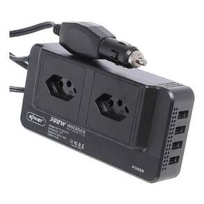 Inversor Carro 12v Acendedor para Tomada 110v Conversor +4 Usb Inversor automotivo 12V para 110V com 300W de potência, transforma a energia do acendedor de do carro em tomada padrão brasileiro e 4 portas USB. Ideal para notebooks, TVs, ventiladores, lâmpadas, celulares, tablets, GPS e outros dispositivos eletrônicos. Conta com visor digital, botão liga/desliga, LED indicador, proteção contra sobrecarga e superaquecimento. Design compacto e portátil, perfeito para viagens, emergências e uso diário. Marca: Não Informado Ean: 7899998900163
