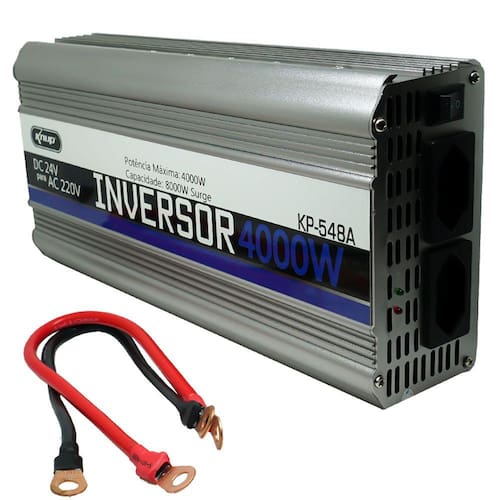 Itens inclusos: 1 Inversor de Potência, 2 Cabos Alimentação, 1 Manual (inglês)