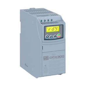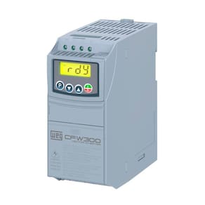 O inversor de frequência da WEG CFW300 é um acionamento de velocidade variável de alta performance para motores de indução trifásicos, ideal para aplicações em máquinas ou equipamentos que necessitam de controle preciso e facilidade de operação.