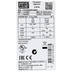 Inversor de Frequencia Weg CFW700 Trifasico 10CV 220V O inversor de frequência é um acionamento de velocidade variável de alta performance para motores de indução trifásicos, ideal para aplicações em máquinas ou equipamentos que necessitam de controle preciso e facilidade de operação. INFORMAÇÕES TÉCNICAS · Código: 11312058 · Modelo: CFW700B28P0T2DB20 · Tensão nominal de entrada: 200-240 V · Número de fases de entrada: Trifásico · Corrente nominal ND : 28 A · Corrente nominal HD : 24 A · Grau de proteção: IP20 · Frenagem reostatica: Standard sem frenagem · Tensão/Frequência: · 220V 50Hz / 60Hz · 230V 50Hz / 60Hz · 240V 50Hz / 60Hz APLICAÇÕES: · Agitadores, · Granuladores, · Misturadores, · Paletizadores, · Ventiladores · Secadores. Ean: 7891327614765