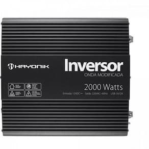 O inversor de onda modificada hayonik chama atenção por sua eficiência e praticidade. Suas dimensões foram reduzidas visando facilitar seu transporte e manuseio. Tensão entrada:10.5-15.0 vdc Saídas:220vac Tensão saída:202vac a 231vac Frequência:60 +-2hz Forma de onda:onda modificada Eficiência:max 85% Temperatura:0°c ~ 40 °c Dimensões:270 x 245 x 91mm - switch liga e desliga; - 02 tomada padrão nbr 14136; - 02 ventoinha para resfriamento; - 02 par de cabos com terminais - indicador led de funcionamento; - carcaça em alumínio; - tamanho compacto; - potência de saída contínua: 2000 w; - frequência de saída: 60 hz ± 2 hz; - protecção contra sobrecarga faixa de temperatura ambiente operacional: 0-40 ° c;