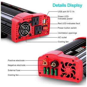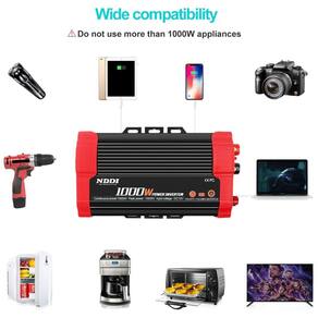 Recurso NDDI o inversor de energia fornece uma saída de corrente contínua de 2AC de 1000 watts pico de potência de 1500 Watts, 2 portas USB 3.1A, projetou um switch para melhorar a usabilidade e a conveniência. e conveniente o inversor de carro possui 4 fusíveis substituíveis, permitindo que você lide facilmente com o problema de substituir o fusível. E 2 ventiladores silenciosos inteligentes embutidos minimizam o ruído, aumentam a vida útil e prolongam o tempo de uso. Amplamente utilizado o conversor de carro resolverá seus problemas de carregamento na estrada, executando o equipamento para viagens. Uma excelente opção para uma longa viagem de carro, camping, emergência e escritórios etc. carregamento de dispositivos eletrônicos, como laptop, telefone celular, câmera digital, barbeador, secador de cabelo etc. Tamanho do inversor Inversor automotivo 25 x 16,5 x 7,8cm. Peso 2kg. Este inversor possui várias proteções, evita sobrecarga, superaquecimento, curto circuito, baixa voltagem, alta voltagem. Lista de pacotes 1x inversor de energia de 1000 W, cabo de fixação de bateria de 2 peças e 58cm, 1x manual do usuário, fusíveis 4x 30a, SOBRE A NDDI A NDDI é uma empresa de alta tecnologia para o desenvolvimento, fabricação e ização de conversores de automóveis avançados, sistema solar, carregador de energia de alta frequência e etc. Nosso objetivo é fornecer as melhores soluções profissionais de energia para você NOTA Evite operar o inversor enquanto a mão estiver molhada. Evite inserir a CA no inversor de energia. Evite usar produtos que excedam o valor máximo do produto. Evite usar o plugue do isqueiro ao usar o inversor em dispositivos acima de 1000w. Evite deixar o inversor de energia nos estados LIGADO enquanto seu carro estiver DESLIGADO. Evite a exposição prolongada à luz solar, resultando em temperatura excessiva ou escaldadura do produto. Especificações Terno para bateria de 12V Saída 110V Potência 1000W Potência de pico 2000W Forma de onda de saída onda senoidal modificada Portas de carregamento USB 3.1Amp compartilhada Frequência 50 , 60Hz Peso do inversor 2kg Dimensões 25 x 16,5 x 7,8cm Incluído na embalagem 1 x inversor de energia de 1000 W 2 x clipe de bateria 4 fusíveis 30A 1 x manual do usuário
