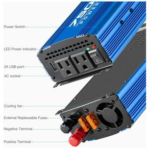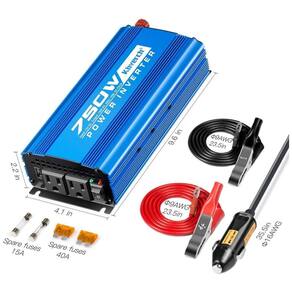 POTENTE E COMPACTO. Fornece potência de pico contínua de 750W e 1500W, reservatório de alumínio leve e extremamente portátil, perfeito para férias, viagens de trabalho e camping ou em qualquer lugar em que a energia seja necessária. APLICATIVO MÚLTIPLO. Projetado com 2 tomadas CA e uma 2A Porta de carregamento USB, ideal para carregar ventilador, videogame, Ipad, câmera digital, TV, furadeira, frigobar e assim por diante. PROTEÇÃO AVANÇADA. Equipado com fusíveis 2 extras de 40A e proteção automática de desligamento contra baixa tensão, sobretensão, sobrecarga, curto circuito e temperatura excessiva. Os ventiladores inteligentes só funcionam quando as cargas aumentam, o que também garante uma experiência de uso ultra silenciosa. O que esta incluso 1 inversor de energia de 750W, 1 plugue de isqueiro, 2 clipes de bateria, 2 fusíveis, 1 Manual do Usuário Marca: Não Informado