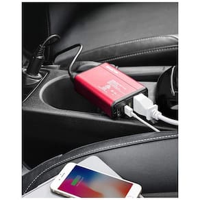 PROTEÇÃO DE TENSÃO DE ISOLAMENTO PATENTEADA ISELECTOR 150w inversor de energia para carro com 2 portas USB inteligentes que podem detectar automaticamente seus dispositivos para fornecer velocidade de carregamento ideal de até 2,4 A por porta saída total máxima de 4,2 A, e uma tomada de 110 V CA ótima para carregar laptop, câmera e dispositivos maiores PORTA DE SEGURANÇA e VENTILADOR DE ARREFECIMENTO Tomadas CA com porta de segurança embutida protegendo as crianças de choques elétricos inesperados. Ventiladores exclusivos e design de ventilador inteligente tornam este adaptador de energia para carro mais fácil de dissipar o calor MULTI PROTEÇÃO Conversor de energia para carro Fusível integrado e proteção total contra superaquecimento, carregamento de sub e sobretensão, curto circuito, sobrecargas e sobrecarga ULTRA COMPACTO e LEVE Design do tamanho de um iPhone e caixa de alumínio durável ideal para uso em férias, viagens de trabalho e camping. O plugue do isqueiro de 32 polegadas, faz com que o conversor de energia do carro seja mais fácil de conectar a quase todos os veículos Certificação ETL Nosso inversor de energia 150W com certificação ETL fornece 150 watts contínuos de DC para AC e 250 Watts de potência de pico Marca: Não Informado