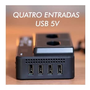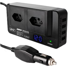 Com uma voltagem máxima de entrada de 12V e saída de 110V, ele permite que você conecte até dois dispositivos simultaneamente, além de contar com quatro portas USB para carregar seus eletrônicos.