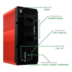 - potência de saída nominal : 2000w - potência de saída pico : 4000w - tensão de entrada dc : 12v - variação da tensão de entrada dc : 10.515v - tensão de saída ac : 220v - variação da tensão de saída ac : 220240v - frequência de saída: 60hz 3hz - corrente sem carga: 0.85a - saída usb: 5v 2.1a - fusível dc: 40a - peso do produto: 4900g - dimensões da embalagem: 22.8 x 15.4 x 5.8 cm - proteções: alarme de baixa voltagem, desligamento automático por baixa tensão, sobretensão e sobrecarga, proteção contra curto-circuito e polaridade reversa - material do gabinete: alumínio - ventoinha automática para resfriamento - indicadores led